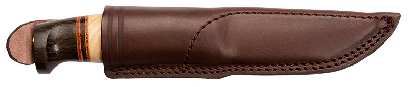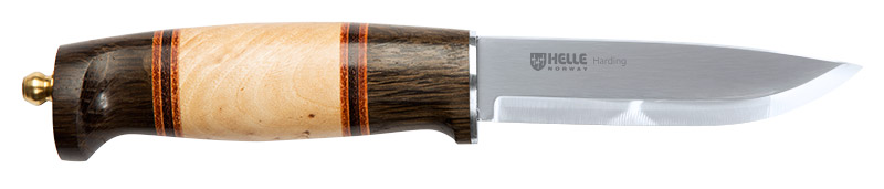 Нож Helle HE99 "Harding" - универсальный походный нож, удобно лежащий в руке при самых различных хватах. Хвостовик клинка проходит через всю длину рукояти и расклепан в латунном “грибке”, на который накидывается особая петля ножен для дополнительной, “мертвой”, фиксации ножа. Характеристики