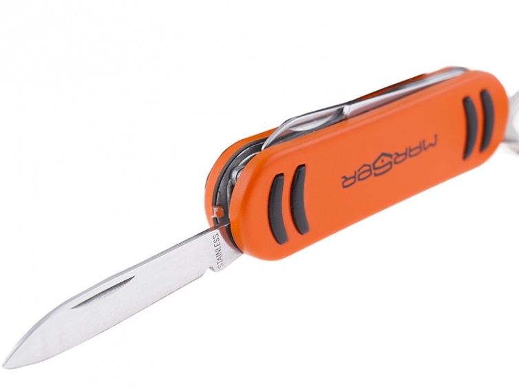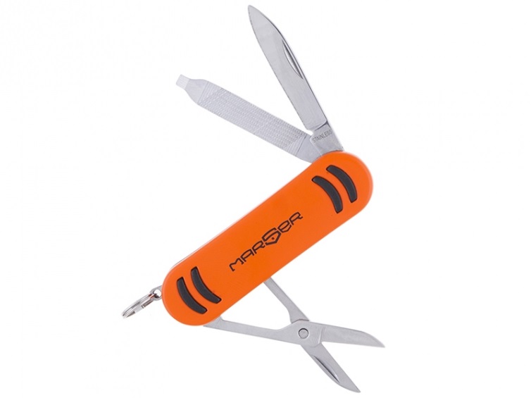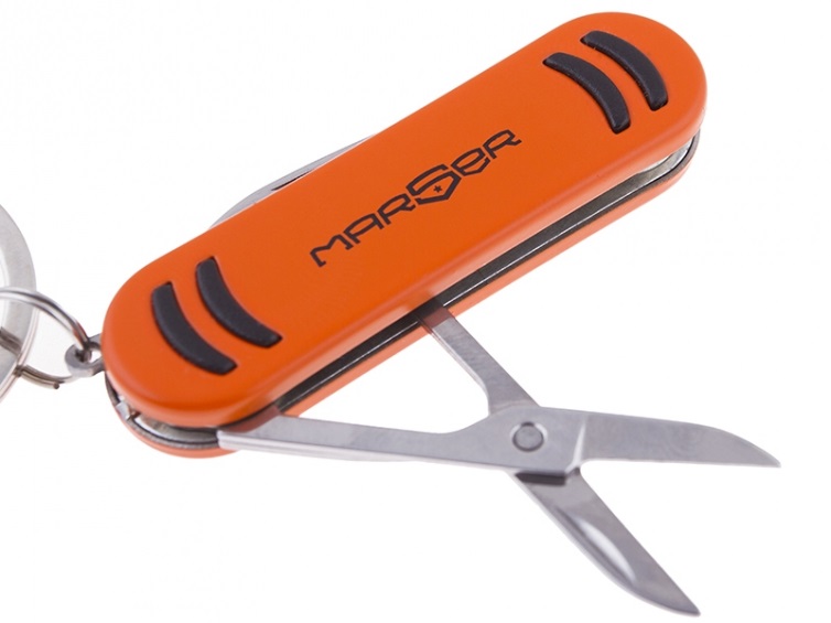 Мультитул Marser с рукоятью оранжевого цвета. Набор инструментов включает в себя нож, пилку, ножницы, карабин и кольцо для ключей. Инструменты выполнены из нержавеющей стали. Мультитул Marser Ast-131 выполнен в традиционном форм-факторе ножа-брелка и удобно крепится на ключе, обладая небольшим весом. Для Екатеринбурга: