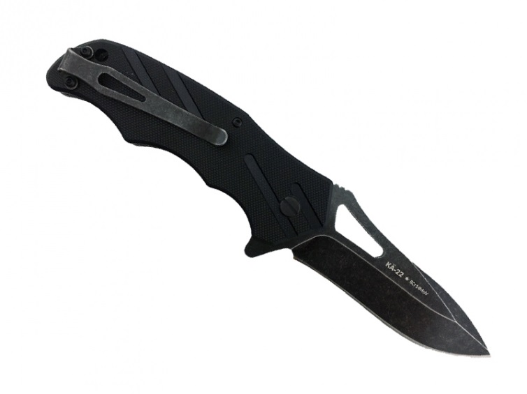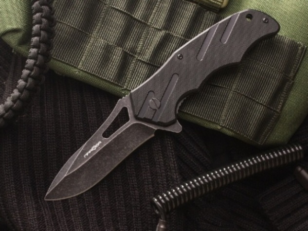 Тактический складной нож, выполненный в футуристичном стиле. Раскрывается нож как при помощи отверстия в клинке, так и при помощи флиппера, который в раскрытом виде становится ограничителем и дополнительно защищает руку от соскальзывания на режущую кромку при работе. Технические характеристики