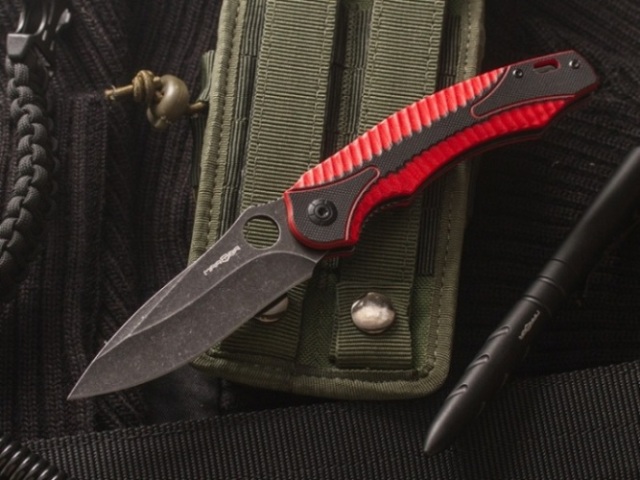 Складной тактический нож, своими очертаниями напоминающий ящерицу. Еще большее сходство с пресмыкающимся ножу придает интересная двухцветная текстура рукояти. Хищный клинок снабжён отверстием для открывания. Технические характеристики
