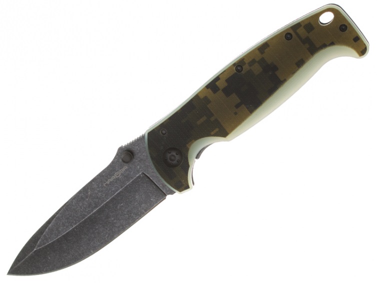 Тактический складной нож с камуфлированной рукоятью из G10 и универсальным клинком со средними спусками. Обработка клинка stonewash защищает клинок от мелких повреждений. Замок frame lock придает ножу еще большую надежность при работе. Технические характеристики