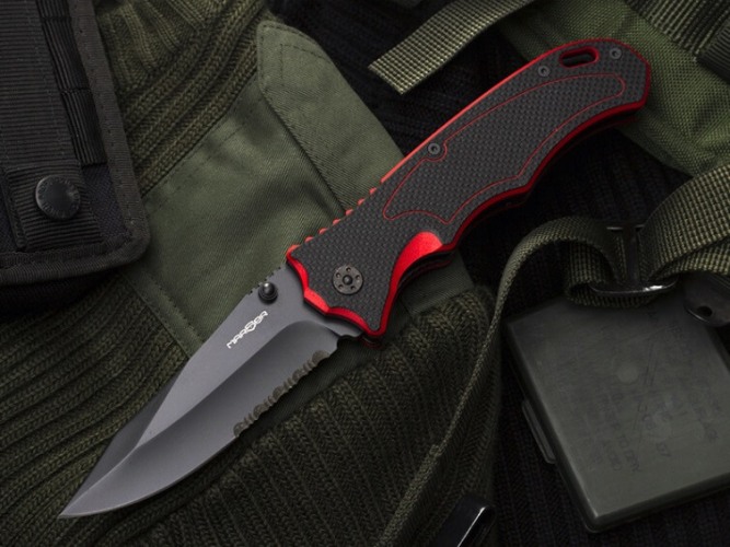 Модификация ножа Ka-8 с черным защитным покрытием клинка и полностью черной фурнитурой. Кроме того, клинок имеет полусеррейторную заточку, что позволяет использовать его для ряда специфических задач. Технические характеристики