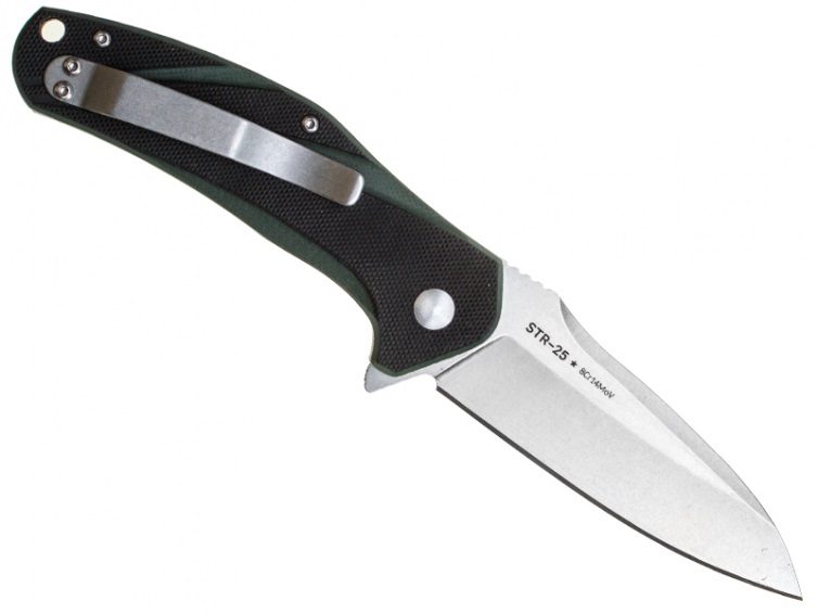Еще один стильный городской нож с клинком типа wharncliffe. Сделан в современном американском стиле складных EDC-ножей. Открывается при помощи плавника, который в раскрытом состоянии становится дополнительным ограничителем. Технические характеристики