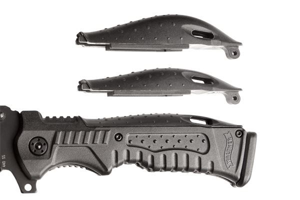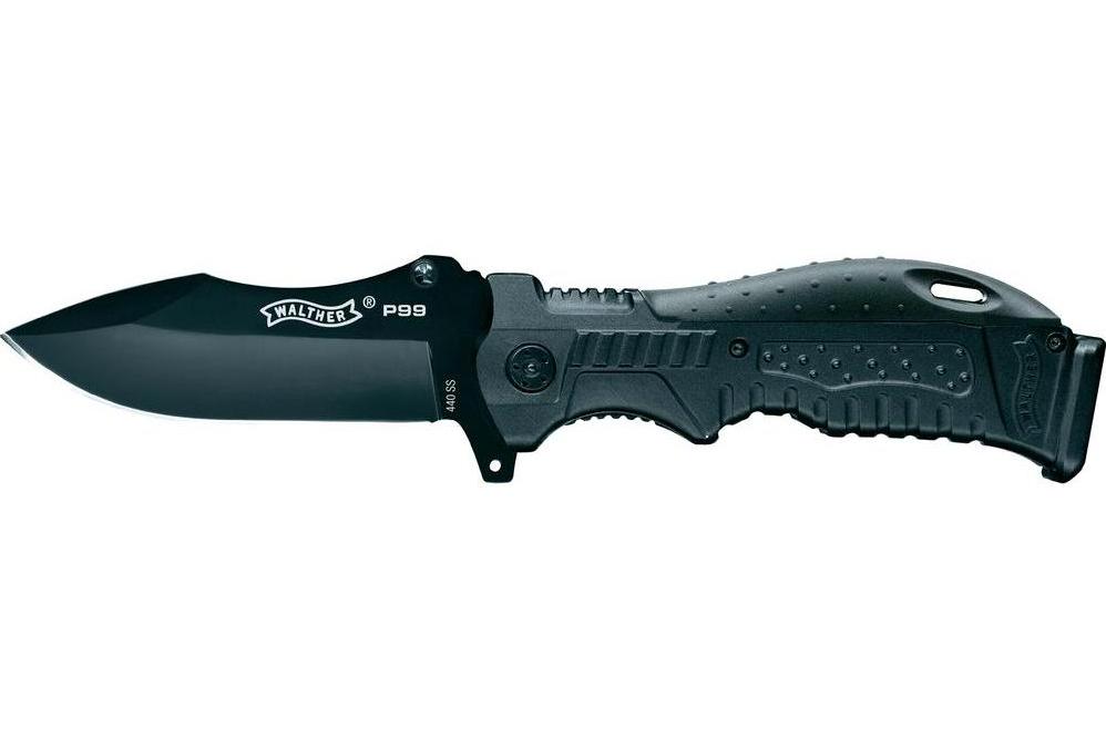 Walther P99 – эффектный универсальный нож с антикоррозийным матовым антибликовым покрытием. Копьевидная форма клинка позволяет выполнять колющие и режущие действия. Лезвие надёжно блокируется и легко открывается одним пальцем.