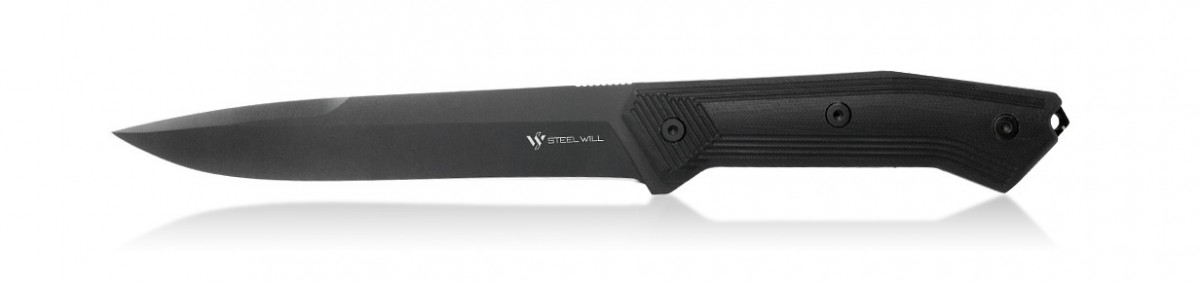 Нож Steel Will 112M Sentence - крепкий, простой и надежный нож. Конструкция - Full-tang. На рукояти имеется массивный стеклобой с отверстием под темляк. Клинок имеет черное антибликовое покрытие. Первая треть обуха ножа SW 112M Sentence имеет фальш-лезвие - это обеспечивает ножу отличную проникающую способность при колющем ударе.