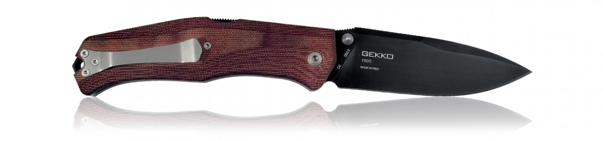 Нержавеющую сталь клинка N690Co в новой модели семейства Gekko заменена на полунержавеющую инструментальную сталь D2, процентное содержание углерода в которой в полтора раза выше, что позволяет закалить её до большей твёрдости и повысить агрессивность реза и стойкость режущей кромки. А для повышения её антикоррозийных свойств, клинок защищён черным PVD-покрытием. Нож Gekko 1505 приобрёл новые режущие свойства, он стал более универсальным с точки зрения применения не только в туристических, но и тактических целях, так как не выдаст местоположение хозяина случайным солнечным бликом. Плюс к этому Steel Will Gekko 1505 стал ещё привлекательнее для использования и в качестве ножа для ежедневного ношения. Полностью сохранив и даже улучшив функциональность 1500-го ножа, новая модель получила совершенно новый незабываемый облик. Рукоять обрела благородный практически королевский цвет Maroon, который особенно эффектно смотрится в сочетании с черным клинком. Сделан в Италии. Характеристики