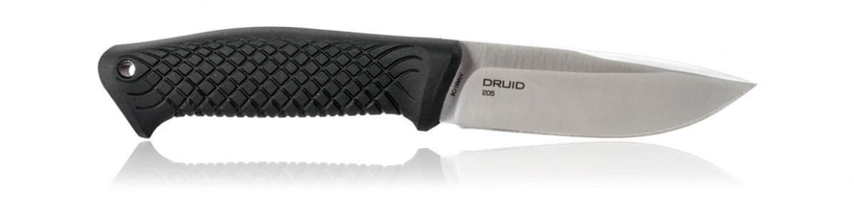Ножи индекс которых заканчивается цифрой 5 – это дальнейшее развитие популярного семейства Druid. Ножи этой серии отличаются более компактными размерами и улучшенной управляемостью при работе. Нож с индексом 205 – задумывался в качестве вспомогательного к ножу Druid 200. Это не просто его уменьшенная проекция, а полноценный туристический нож небольших размеров. Его габариты и вес, позволяют использовать его для более тонкой и деликатной работы, где его старший брат был бы не очень удобен. Рукоять ножей мини серии Druid имеет более мелкую структуру, что делает их еще более ухватистыми. В остальном же это все те же надежные «друиды» с неприхотливым клинком и прочной долговечной конструкцией Full Tang. Также как и классические ножи серии Druid, оснащены кожаными ножнами.