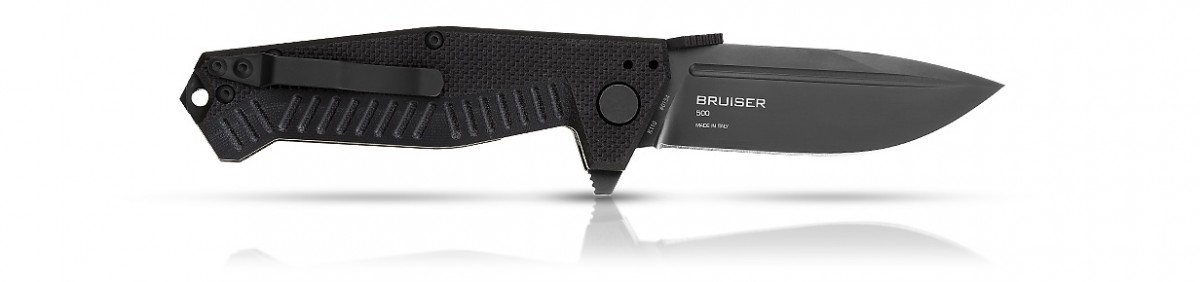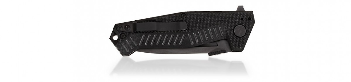 Складной нож для самых тяжелых работ – крупный, мощный, надежный. Молниеносно открывается при нажатии на плавник клинка. Его рукоять с текстурированными накладками из G10 и клинок с плавником, в разложенном положении становящимся гардой, обеспечивают высочайшую безопасность в работе и надежное удержание ножа даже влажной рукой. В тыльной части рукояти расположен стальной стеклобой. Гранёная призма в форме головы змеи, закреплённая на обухе клинка обеспечивает удобное открывание ножа даже рукой в толстой перчатке и образует удобный упор для большого пальца руки. Переставляемая на четыре положения клипса. В комплекте чехол из Cordura®.