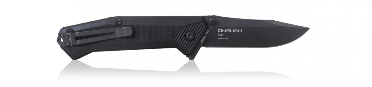 Нож Steel Will 632 Onrush его можно смело отнести к удобным, городским "тактикам". Onrush, в переводе с английского, означает "стремительный". Клинок с черным покрытием PVD выполнен из стали марки N690Co с бритвенной заводской заточкой. Нож Onrush 632 от фирмы Steel Will Knives снабжен не только плавником для быстрого открывания, но и имеет двусторонний опорный шпенек для открывания одной рукой. Этот нож имеет рукоять с черными накладками из материала G10, на которых нанесена насечка, обеспечивающая прочное сцепление любым хватом и легко чистится. Вся конструкция крепится на трех винтах типа TORX. В тыльной части рукояти ножа Onrush 632 предусмотрены заострение, выполняющее роль стеклобоя и отверстие под темляк.