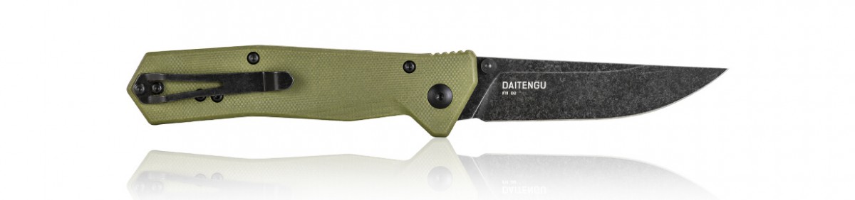 Стильный джентельменский нож Steel Will F11-33 Daitengu. Рукоять выполнена из прочного материала G10. Клинок c чёрным покрытием, обработанный по технологии "Stonewash", изготовлен из инструментальной стали марки D2, твердость которой заявлена на уровне 58-60 HRC.Сатиновый клинок извлекается при помощи двустороннего шпенька и фиксируется стальным замком Liner-Lock.