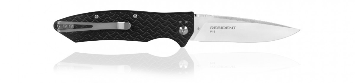 В серии изначально представлено две версии: Resident F15-51 и Resident F15-91, которые отличаются между собой как функциональностью, так и используемыми материалами, в основном для создания рукоятки. Клинок обеих версий выполнен из инструментальной стали марки D2, твёрдость которой заявлена производителем в пределах 58-60 единиц по шкале HRC. А вот конструкция и материалы для создания рукоятки в представленных моделях разная. В версии Resident F15-51 используются стальной лайнер и текстурированные накладки из алюминиевого сплава. Фиксирует клинок простой и надёжный Liner Lock.