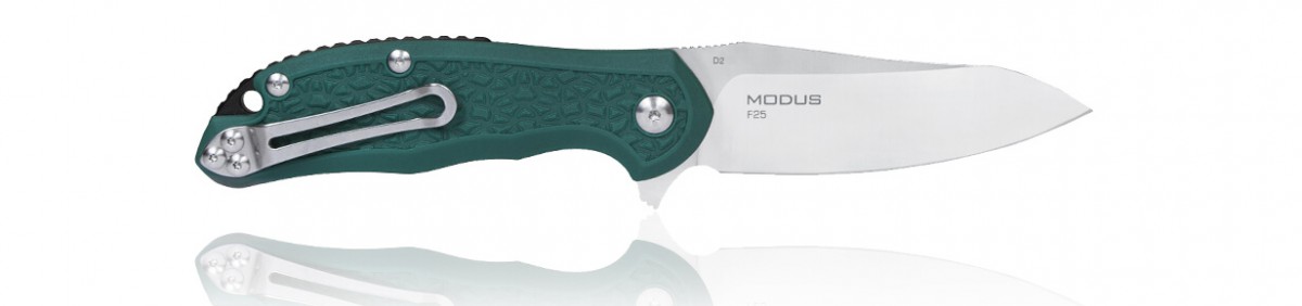 F25-12 Modus - очередная новинка от Steel Will. Клинок Modus F25-11 изготовлен из стали D2, зарекомендовавшей себя, как отлично сбалансированная, позволяющая клинку агрессивно резать и хорошо удерживать остроту режущей кромки. Сталь D2 относится к премиальному сегменту и используется именитыми производителями ножей по всему миру. В основе конструкции рукояти -перфорированные стальные лайнеры. Они легки и прочны. Накладки из пластика FRN текстурированы для лучшего сцепления с ладонью, а притаившийся между ними синий спейсер из анодированного алюминия служит не только яркой деталью, но и посадочным местом для темляка.