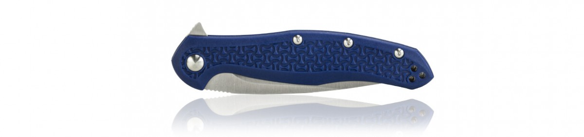 Клинок выполнен из прочной стали D2 c изящной сатиновой обработкой. Рукоять из надежного термопластика (FRN).