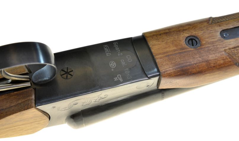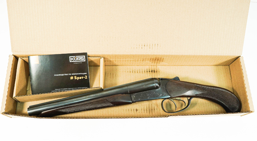 Сделан охолощенный обрез Брат-2 из гладкоствольного ружья ИЖ-43, практически полностью сохранил внешний вид и конструктивное устройство. Модель оборудована автоматическим двухпозиционным предохранителем, обрез встает на предохранитель во время перезарядки и для стрельбы обязательно необходимо сдвинуть предохранитель в боевое - переднее положение. Механизм обреза - переломного типа, для зарядки необходимо сдвинуть флажок отпирателя на верхней части ружья в права до упора и с усилием переломить ствол. Вкладыши-имитаторы, вместе с отстреленными гильзами выдвигаются выбрасывателем в момент открытия стволов. Цевье и рукоять выполнены из натурального дерева, стволы и механизмы из оружейной стали. Для Екатеринбурга: