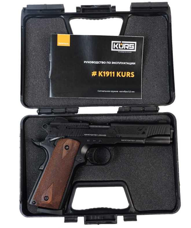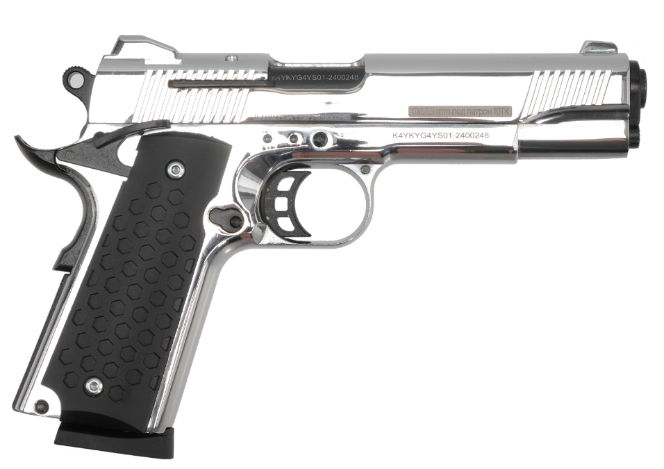 Пистолет охолощенный К-1911 Kurs, кал. 10ТК (чёрный, хром, хаки)