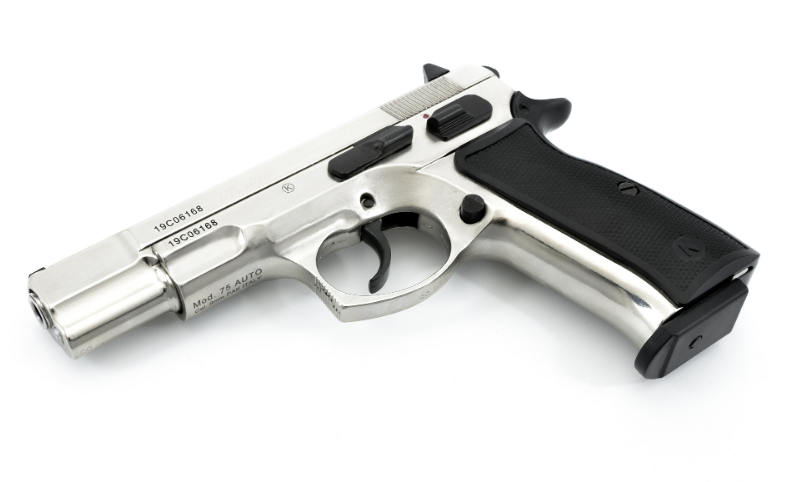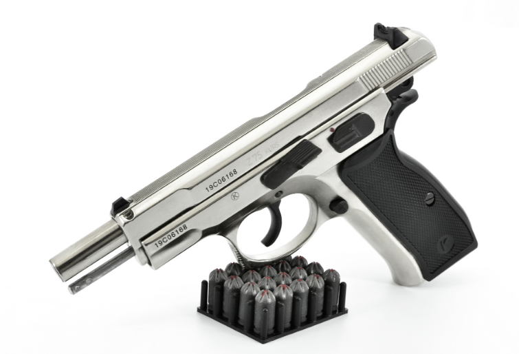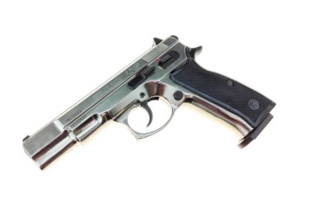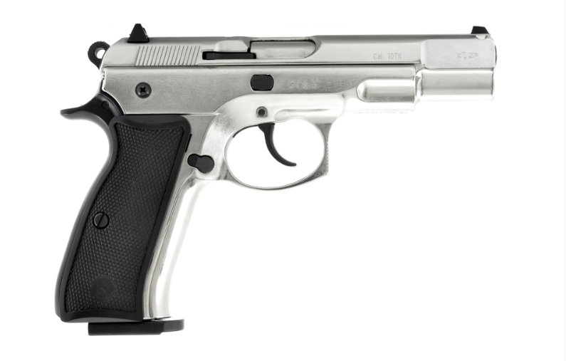 Главная → Купить по низкой цене → Охолощенное оружие → Пистолеты СХП → Пистолет охолощенный Z75 Kurs (CZ75), кал.10ТК (хром, серебро)