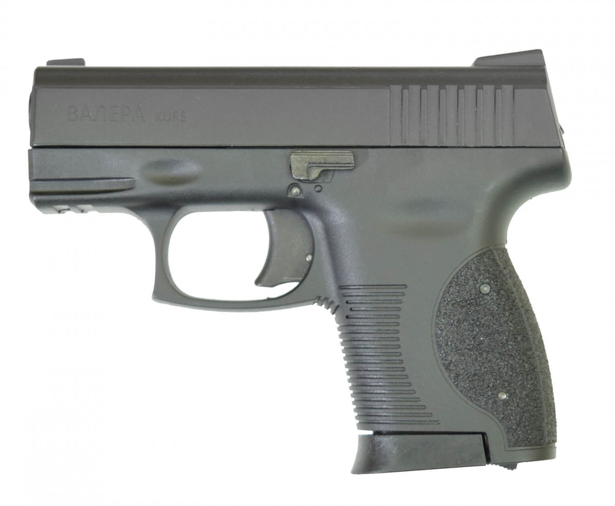 Охолощенный пистолет ВАЛЕРА KURS под патрон 10ТК от производителя охолощенного оружия Курс-С относится к “субкомпактнымому” классу пистолетов, имеет небольшие габариты и отличную эргономику. Пистолет самозарядный, имеет скрытый курок и ударно-спусковой механизм одинарного действия, т.е. позволяет произвести первый выстрел только с предварительно взведенным курком. В новом пистолете ВАЛЕРА KURS имеется неавтоматический предохранитель и автоматическая затворная задержка – затвор снимается с задержки при извлечении пустого магазина. Некоторые технические характеристики : Выбрать цвет можно в окошке, справа от цены