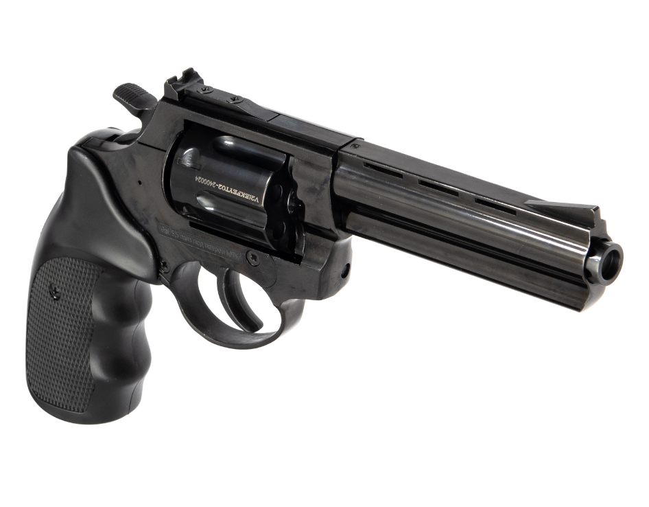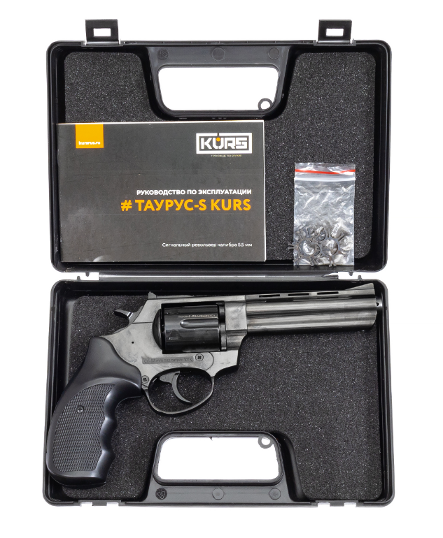 В нашем магазине вы можете купить охолощенный сигнальный револьвер Таурус-S Kurs 4,5 дюйма черный-хром-графит - цвет можно выбрать в окошке справа от цены, калибр 10ТК. Производство "Курс-С" г Сарапул. Вместимость барабана 6 патронов Это версия, у которой на конце ствола заглушка с отверстиями (версия со штифтами в стволе давно не производится, и уже не будет). Заглушка выступает на 3-4 мм от конца ствола, как на фото. У ранней версии она выступала на 15мм, у нас именно свежая версия. Изделие сертифицировано как сигнальный пистолет калибра 5,5 мм (согласно закону об оружии, сигнальное оружие до 6 мм СВОБОДНО ПРИОБРЕТАЕТСЯ гражданами с 18 лет), т.е. при его приобретении НЕ ТРЕБУЕТСЯ УВЕДОМЛЯТЬ Росгвардию! Револьвер под холостой патрон Таурус-СО 4,5 дюйма - один из немногих в России охолощенных револьверов БЕЗ ЛИЦЕНЗИИ! В комплекте: револьвер охолощенный Таурус-CO Курс 4,5", кейс, клип-звездочка 2шт, паспорт, сертификат Изготавливается из газового револьвера. Барабан изготовлен из стали, а сам корпус выполнен из высокопрочного сплава "Zamak", что делает револьвер долговечным оружием, способным радовать своего владельца безупречной работой и схожестью с боевыми аналогами