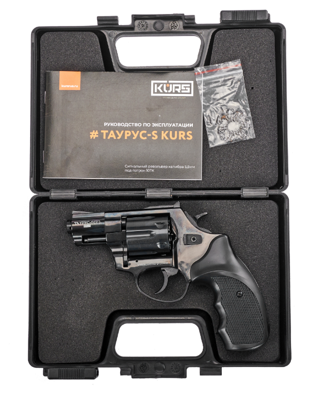 В нашем магазине вы можете купить сигнальный охолощенный револьвер Таурус-S Kurs ствол 2 дюйма черный, калибр 10ТК. Производство "Курс-С" г Сарапул. Изделие сертифицировано как сигнальный пистолет калибра 5,5 мм (согласно закону об оружии, сигнальное оружие до 6 мм СВОБОДНО ПРИОБРЕТАЕТСЯ гражданами с 18 лет), т.е. при его приобретении НЕ ТРЕБУЕТСЯ УВЕДОМЛЯТЬ Росгвардию!