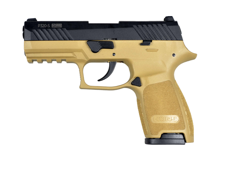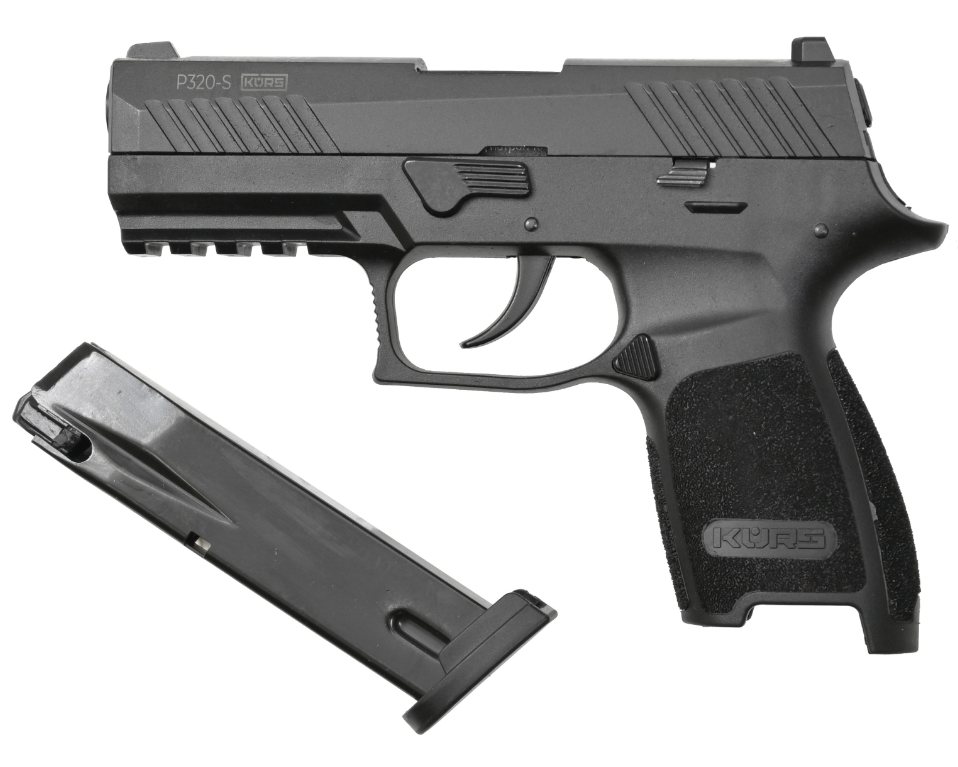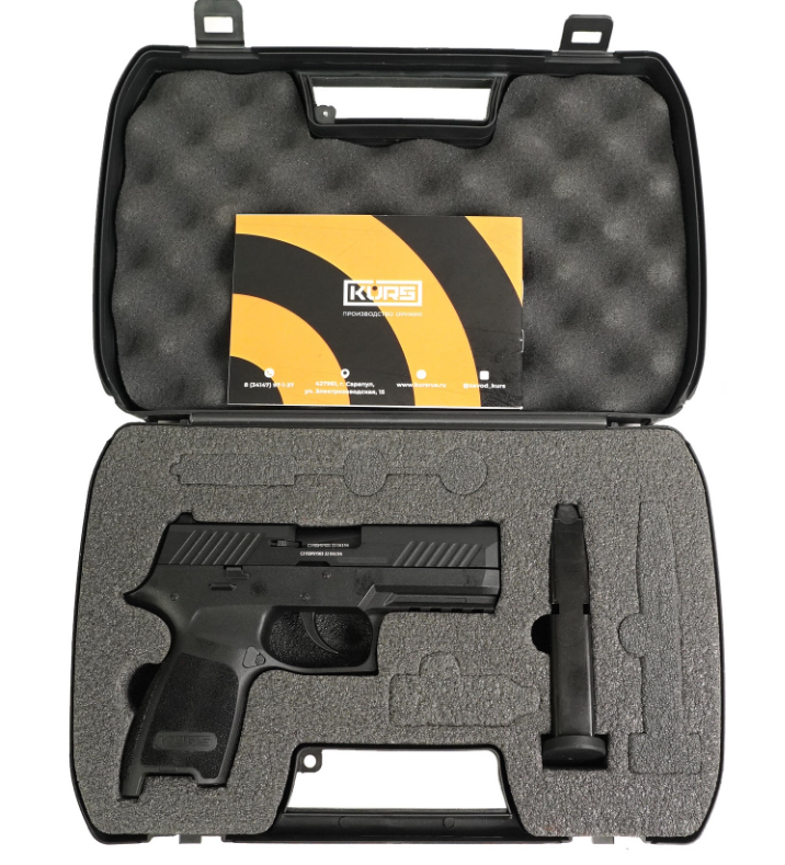 Сигнальный пистолет P320-S KursИзделие сертифицировано как сигнальный пистолет калибра 5,5 мм (согласно закону об оружии, сигнальное оружие до 6 мм СВОБОДНО ПРИОБРЕТАЕТСЯ гражданами с 18 лет), т.е. при его приобретении НЕ ТРЕБУЕТСЯ УВЕДОМЛЯТЬ Росгвардию! Сигнальный пистолет Р320 от компании Курс-С использует для стрельбы светозвуковые патроны калибра 10 ТК. Внешне пистолет копирует известную модель SIG Sauer P320. В конце ствола калибра 5,5 мм установлена заглушка с радиальными отверстиями.