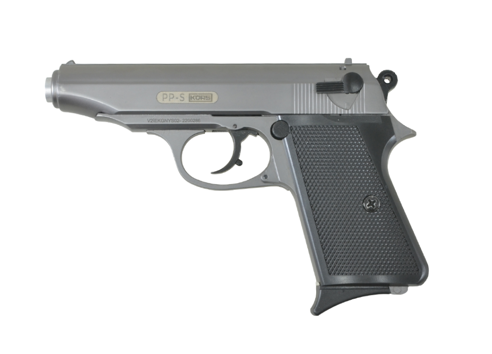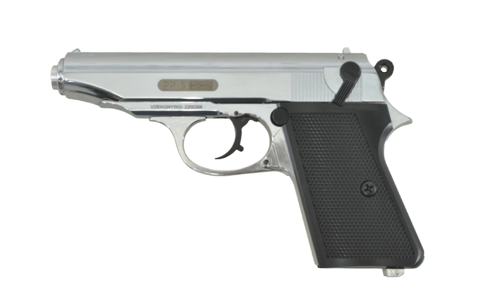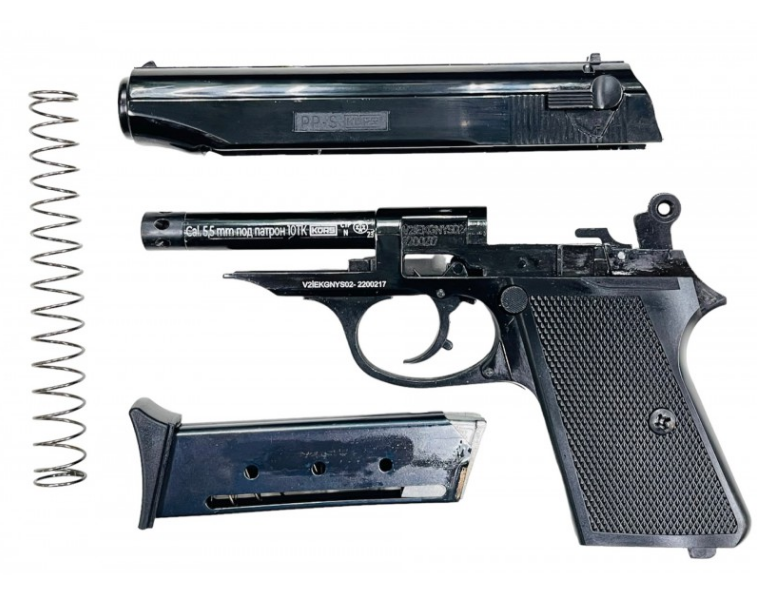 Сигнальный СХП пистолет РР-S KURS – под патрон 10 ТК от российского производителя Курс-С. Изделие сертифицировано как сигнальный пистолет калибра 5,5 мм (согласно закону об оружии, сигнальное оружие до 6 мм СВОБОДНО ПРИОБРЕТАЕТСЯ гражданами с 18 лет), т.е. при его приобретении НЕ ТРЕБУЕТСЯ УВЕДОМЛЯТЬ Росгвардию! Пистолет является прототипом германского боевого оружия образца 1929 года – Walther PP, одного из первых массовых пистолетов с ударно-спусковым механизмом двойного действия.