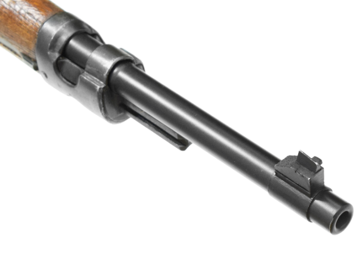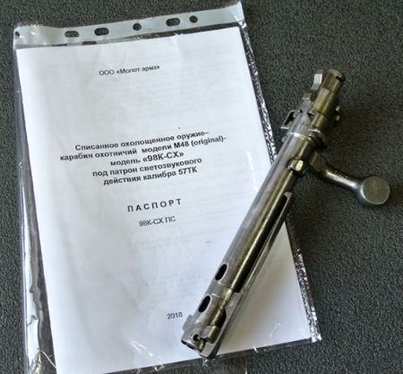 Охолощенный карабин Маузер 98К-СХ (под патрон 57ТК)При покупке карабина вы получаете в подарок раритетный ремень от винтовки Мосина! Охолощенная версия легендарного карабина Маузер 98К, являющегося самым массовым оружием вермахта. Модель выполнена из настоящей боевой единицы, а её деактивация была произведена на заводе Молот-Армз. Имитация стрельбы из охолощенного карабина производится патронами свето-звукового действия 57ТК. Для покупки модели не требуется никаких разрешений и лицензий, она может приобретена любым гражданином РФ старше 18-ти лет. Длина карабина составляет 1100 мм. Важно отметить, что все металлические части модели охолощенного Маузер 98к-СХ изготовлены из настоящей оружейной стали. Ложе и приклад модели выполнены из лакированной древесины. Масса карабина - 3.8 кг. Затвор модели - продольно-скользящего типа. Карабин Маузер 98к охолощенный оснащен магазином на 5 патронов. Хочется сказать, что модель имитирует стрельбу только в одиночном, неавтоматическом режиме, то есть, после каждого выстрела пользователю необходимо передернуть затвор для того, чтобы извлечь отработанную гильзу и загнать новый патрон в патронник. Как и любое охолощенное оружие, данная модель имеет несколько необратимых изменений в своей конструкции для того чтобы стрельба какими либо патронами, за исключением холостых, из карабина была невозможна. Основные элементы деактивации: