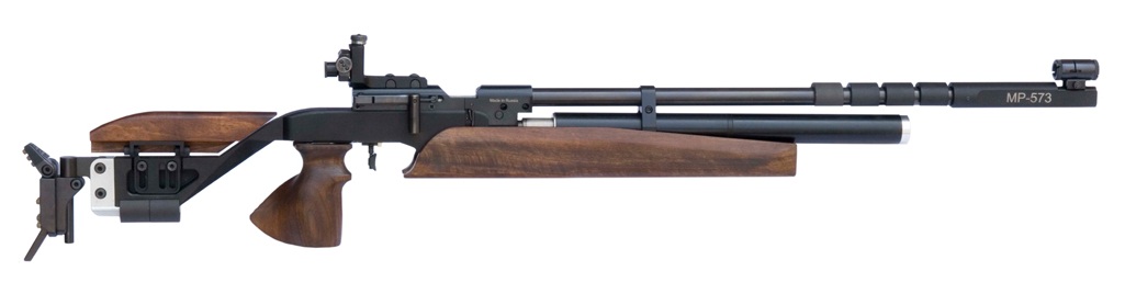 Пневматическая винтовка МР-573-02 кал. 4.5мм (спорт) - PCP-пневматика производства Ижевского Механического Завода. С полностью заряженного баллона можно совершить до 450 выстрелов. Эргономичный приклад имеет возможность регулировки по длине и вертикали, а также углу положения затыльника. Высоту и угол уклона можно изменять и на щеке приклада. Для Екатеринбурга: