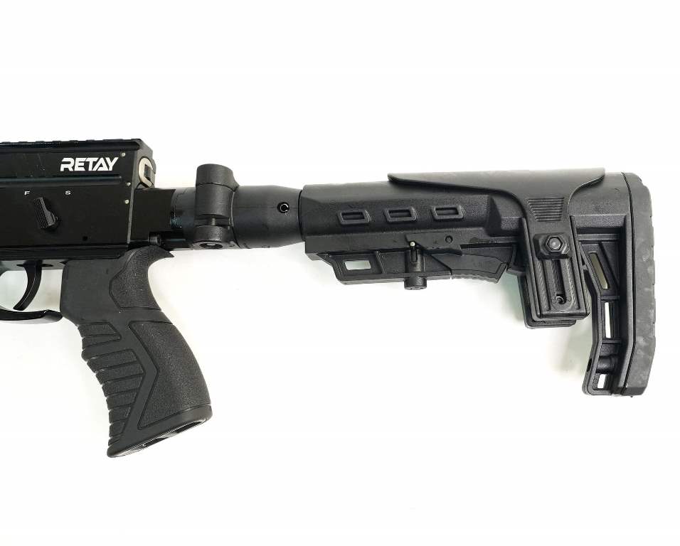 - Особенности: пистолетная рукоять, регулируемый подщечник, тактическое цевьё