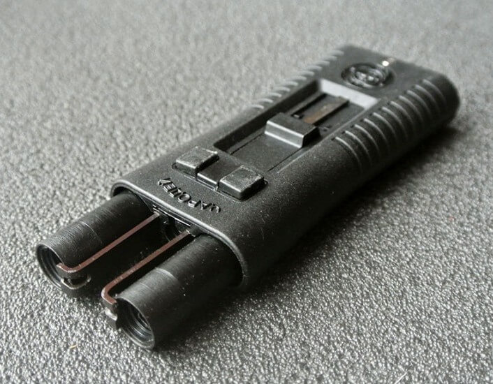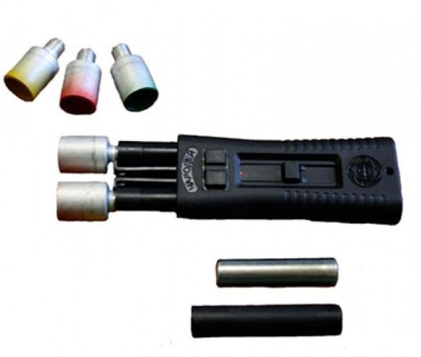 Устройство аэрозольное "Чародей" с ЛЦУ - удобное и эффективное средство личной самозащиты, постепенно набирающее популярность. Аэрозольное устройство «Чародей» - самое дальнобойное гражданское оружие, доступное без разрешения! После спуска, газ, заправленный в БАМы, высвобождается и посылается в цель узконаправленной струей. Дальность «Чародея» - 3 метра – выше, нежели у большинства газовых баллонов, кроме того, им можно намного точнее прицелиться. Траектория полета газа не будет сбита дождем или ветром, поскольку струя летит с достаточно большой силой. По той же причине «Чародей» можно применить и в помещении, не боясь навредить себе и окружающим. «Чародей» отличается от других аэрозольный пусковых устройств небольшими габаритами и весом (меньше пачки сигарет), а также – нетребовательностью к типу боеприпасов. Эта модель может стрелять любыми БАМами, холостыми патронами и даже сигнальными ракетами с помощью специальной насадки. Технические характеристики: