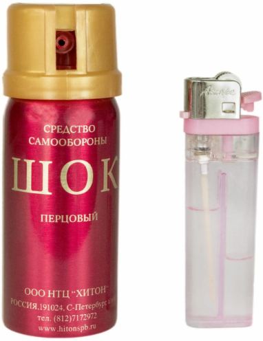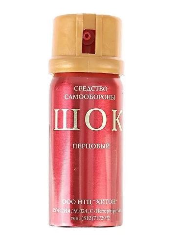 Газовый (перцовый) баллончик «Шок» (OC), 65 мл, аэрозольного типа является продукцией ООО НТЦ «Хитон» (производит аэрозольные упаковки с 1992 года). С выходом на рынок аэрозольных средств самозащиты, компания проводила активные исследования при принятии решений о типах и возможном ассортименте выпускаемой продукции. В итоге, было принято решение о производстве средств самообороны в аэрозольной упаковке содержащих ирритант ОС (олеорезин капсикум - экстракт натурального красного жгучего перца), т.к. данный ирритант показал максимальную, недостижимую для других ирритантов эффективность и безопасность по медико-биологическим последствиям его применения. Ирритант ОС – в отличие от других ирритантов, разрешенных Минздравом Российской Федерации к применению на территории России для средств гражданской самообороны, является ирритантом не химического, а природного происхождения. Сам ирритант ОС - это густая маслянистая жидкость по консистенции напоминающая мед. Данный ирритант требует особенного подхода при производстве аэрозольных упаковок и предъявляет повышенные требования к конструкции баллона, отличающиеся от требований к конструкции и принципам производства баллончиков, снаряженных ирритантами химического происхождения. Распылительная головка разрабатывалась специально для ирританта ОС. Для максимально эффективного воздействия ОС не только на слизистые, но и на верхние дыхательные пути, ирритант в момент выхода из баллончика должен состоять только из определенного размера капель. Распылительная головка баллонов «ШОК» является уникальной по конструкции, в отличие от цельнолитых распылительных головок других производителей, состоит из двух частей и позволяет достичь оптимального диаметра частиц аэрозоли. Данная конструкция на российском рынке применяется только в баллонах «ШОК». Поэтому попытки других производителей производить баллончики с ОС оказались менее успешными. При сборке баллончиков используются только высококачественные цельновытянутые корпуса швейцарского производства. Высокое качество производства корпусов позволяет достичь максимальной безопасности и ударопрочности из-за отсутствия разностенности корпуса и равномерного распределения нагрузки на корпус. ООО НТЦ «Хитон» использует клапаны производства Швейцарии. Они, так же как и корпуса сделаны из алюминия, что обеспечивает отсутствие коррозии в клапане и позволяет гарантировать полную работоспособность, безопасность, и стабильность характеристик в течение всего срока службы баллона. «ШОК» – единственный перцовый баллончик на российском рынке, в котором содержится 1000 мг концентрата ОС - 3 000 000 SHU (эквивалент 3000 кг красного жгучего перца в каждом баллоне). Столь выдающихся характеристик ирританта ОС, снаряжаемого в баллоны «ШОК» удалось достичь, применяя несколько степеней очистки стандартного сырья. Для обеспечения качества баллончика фирменная завальцовка важна не менее чем жгучесть. ООО НТЦ «Хитон» разработало комплект оборудования по одновременной заправке и завальцовке аэрозольных устройств. Благодаря данному оборудованию, а также качеству комплектующих надежность баллонов «ШОК» в 1,5 раза выше по сравнению с баллонами других производителей, представленных на рынке России.