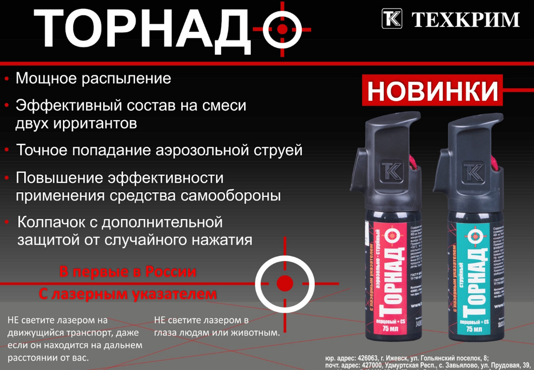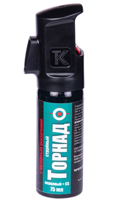 Перцовый баллончик ТОРНАДО (75 мл) с ЛЦУ (струйный или аэрозольно-струйный) Средство самообороны «Торнадо» объемом 75 мл выпускаются со струйным и аэрозольно-струйным типом распыления. Отличительной особенностью «Торнадо» является наличие лазерного целеуказателя, что обеспечивает точное попадание аэрозольной струи в цель, а также интенсивный выброс содержимого. ВНИМАНИЕ! При легком нажатии на кнопку — срабатывает лазер. При полном нажатии — происходит выброс содержимого. Баллон Торнадо (аэрозольно-струйный) 75 мл Масса , г: от 84 до 86 Баллон Торнадо (струйный) 75 мл Масса , г: от 84 до 86 Слезоточивые вещества (ирританты): Срок годности: 3 года Для Екатеринбурга: