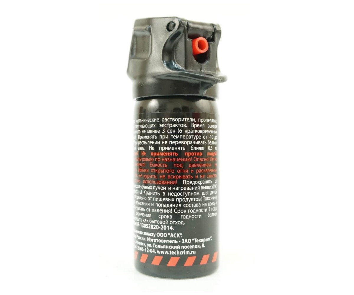 Распылитель (аэрозольный баллончик) AntiDog Факел, 65 мл – это гуманное и эффективное средство из новой линейки газовых баллончиков российского производителя «Техкрим», предназначенное для защиты от стай бродячих собак или отдельных агрессивных животных. При распылении образуется газовая завеса, которая станет превентивной мерой от нападения животного. Тип распыления – аэрозольный, что обеспечивает максимально высокий респираторный эффект. В состав распылителя входит смесь отпугивающих экстрактов, репелленты и растворители органического происхождения. Это довольно гуманное средство самообороны, не наносящее животным увечий и тем более не приводящее к их смерти, при этом действие распылителя гарантировано защитит его обладателя от нападения – животное отвлечется на собственные болевые ощущение, и вы сможете удалиться на безопасное расстояние. Эффективная дальность действия распылителя – 1-1,5 метров. Так как смесь активных веществ распылителя не проходила испытаний на безопасность по отношению к человеку, его запрещено применять против людей. Тем не менее в критических ситуациях баллончик может быть применен для самозащиты против злоумышленников. Компактные размеры баллончика позволяют носить его в кармане одежды или в самой миниатюрной сумочке. Объем – 65 мл. АнтиДог Факел – действенное средство самообороны, защитит от нападения агрессивных собак во время прогулок, занятий спортом или выгула домашних питомцев. Для Екатеринбурга: