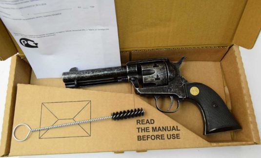 Сигнальный револьвер Chiappa Single Action 4", Colt Peacemaker M 1873 Antuque (античный, состаренный) представляет собой точное воспроизведение боевого аналога - легендарного пистолета одинарного действия Colt Peacemaker (Писмейкер, миротворец) – первого револьвера компании Кольт. Характеристики и особенности сигнального пистолета Colt Peacemaker M 1873: