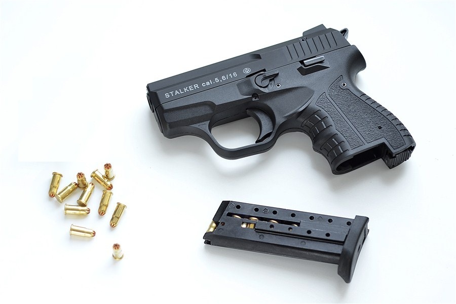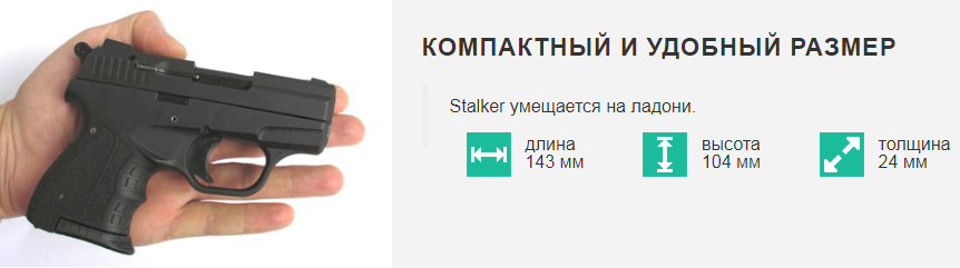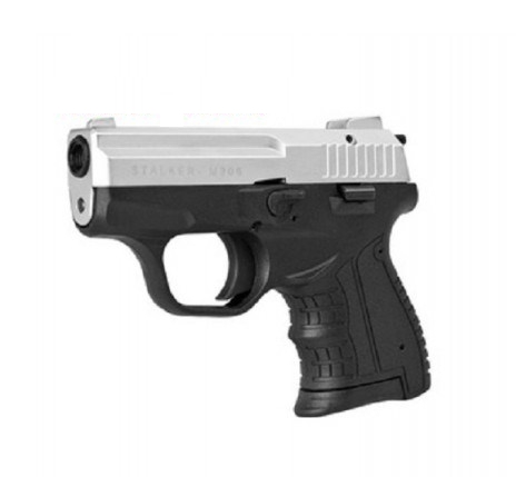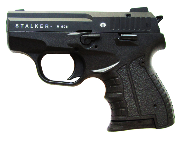 Сигнальный пистолет STALKER 906 KURS. Сертифицирован как КСОИ (конструктивно схожее с оружием изделие), поэтому по закону оружием не является. Никаких требований по покупке/хранению/регистрации НЕТ. Приобретается абсолютно свободно! видео с пистолетом можно посмотреть здесь == Есть версия с резьбой в стволе, и есть версия без резьбы. Вариант можно выбрать в окошке, справа от цены. МОРТИРКИ В КОМПЛЕКТЕ НЕТ в обеих версиях. К обеим версиям пистолета отлично подходит вот такая мортирка, крепко держится и не вылетает == Сигнальный/холостой пистолет СТАЛКЕР - первая самозарядная модель на российском рынке сигнального оружия с полным циклом работы автоматики! Купить сигнальный/холостой пистолет STALKER можно свободно и без лицензии при достижении возраста 18 лет. При выстреле за счет давления пороховых газов затвор пистолета откатывается назад, одновременно извлекая из патронника и выбрасывая далеко вправо стреляную гильзу. Одновременно, двигаясь назад, затвор взводит курок пистолета. Достигнув крайнего заднего положения, затвор под действием возвратной пружины начинает движение вперед, одновременно захватывая из магазина верхний патрон и досылая его в патронник. STALKER снова готов к выстрелу! Полный цикл работы автоматики с откатом затвора (так называемая функция BlowBack) может реализовать только достаточно мощный боеприпас. Как и в сигнальном револьвере LOM-S, в самозарядном пистолете STALKER используется тот же монтажный (строительный) патрон калибра .22NC (5,6*16 мм). Его мощности хватает как на более громкий (по сравнению с традиционным для России боеприпасом к сигнальному оружию - капсюлю 'Жевело') звук выстрела (сигнал), так и для надежного обеспечения полного цикла перезаряжания. Сигнальный пистолет Сталкер имеет небольшие габариты (длина 143 мм, высота 104 мм, толщина 24 мм) и массу 460 грамм. Его габариты находятся ближе к субкомпактным пистолетам, что позволяет STALKER быть удобным при транспортировании, ношении и стрельбе. Емкость магазина - 8 патронов. Помимо функций сигнального оружия, самозарядный пистолет STALKER так же подойдет для обучения первичным навыкам обращения с оружием. Комплектация: пистолет Stalker, паспорт, пластиковый кейс