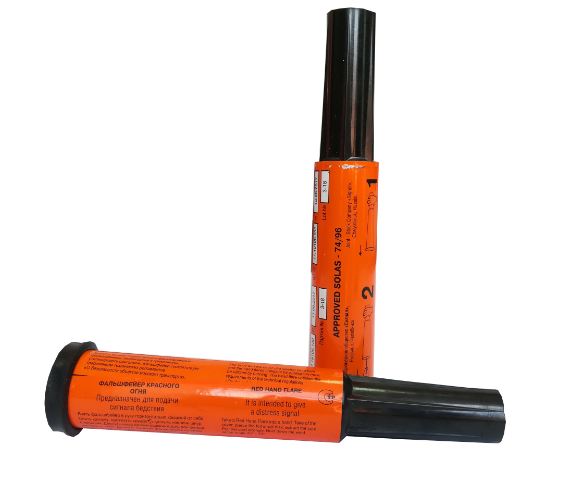 Фальшфейер красного огня ФКО - ручное пиротехническое устройство, предназначенное для подачи светового сигнала бедствия, как в ночное, так и в дневное время суток. Входит в обязательный перечень сигнальных средств для оснащения морских и речных судов, для укладки в спасательные плоты и шлюпки. Фальшфейер красного огня состоит из пластмассового корпуса, в котором размещены пиротехнический элемент и воспламенительное устройство. Приводится в действие рывком шнура. При срабатывании производит форс яркого пламени. Надежно работает даже после погружения в воду. Производитель: ФГУП Сигнал или КХЗ (Краснозаводский хим завод, бренд Record). Характеристики и параметры одинаковые. Если вам важен конкретный производитель, сообщите об этом менеджеру Технические характеристики