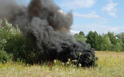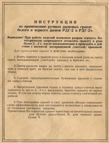 Ручная дымовая граната черного дыма РДГ-2ч применяется для имитации пожара танка (автомобиля) и прикрытия дымом действий экипажа. Время дымообразования 1 мин