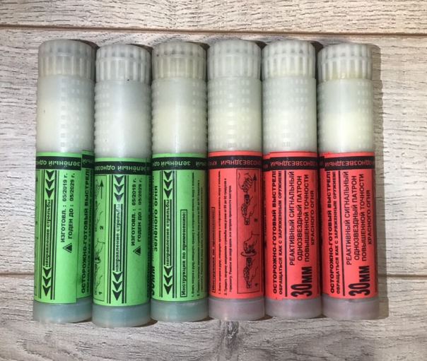 В нашем магазине вы можете купить зеленый РСП-30 картон и пластик, реактивная сигнальная ракета зеленого цвета. Варианты: 1) РСП-30 в пластиковом корпусе, зеленый однозвездный 2) РСП-30 в картонном корпусе, зеленый однозвездный 3) РСП-30 в картонном корпусе, зеленый многозвездный (3 звездки) Выбрать нужный вариант можно в окошке, справа от цены Назначение: сигнализация в ночное и дневное время в интересах управления войсками и поддержания взаимодействия между ними. Внимание! Для картонной версии - перед запуском рекомендуем обстучать картонную часть по кругу об твердый предмет, для предотвращения непредсказуемой траектории полета. Заряды иногда слёживаются. РСП-30 представляет собой готовый выстрел. Отстрел производится под углом 70 – 80 градусов к горизонту, без применения специального оружия или приспособлений. Используется в страйкболе, пейнтболе, исторических реконструкциях, и других подобных мероприятиях, а так же туристами, охотниками и рыбаками, для подачи сигналов. Патрон состоит из пусковой трубки, воспламенительного устройства, ракеты, поджимной трубки, пыжей, крышки и колпачка. В пусковой трубке располагаются воспламенительное устройство и ракета. Основным элементом конструкции воспламенительного устройства является терочный капсюль-воспламенитель. Ракета состоит из двигателя, вышибного заряда и сигнальной звездки, дающей при сгорании пламя красного или зеленого цвета. Основными элементами конструкции двигателя являются: корпус, турбинка с соплами, воспламенительная звездка, и шашка. Вышибной заряд служит для воспламенения сигнальной звездки при отделении ее от реактивной части. Сигнальная звездка состоит из алюминиевой оболочки, в которую запрессован пиротехнический состав красного или зеленого огня. Выдергивание вытяжного шнура приводит к срабатыванию капсюля-воспламенителя. От луча огня воспламеняется воспламенительная звездка и пороховая шашка двигателя. Ракета вылетает из пусковой трубки и через 3-4 с после выстрела вышибной заряд воспламеняет сигнальную звездку и отделяет ее от реактивной части. Высота подъема сигнальной звездки — 200-300 м. Время горения сигнальной звездки 9–11 с На колпачке патрона красного огня имеется одна полусферическая выпуклость, зеленого огня - две полусферические выпуклости.Торец колпачка патронов окрашен в соответствии с цветом огня сигнальной звездки (красный или зеленый). Для Екатеринбурга: