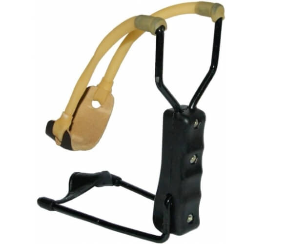 Рогатка "MB" средняя с упором - средство, предназначенное для использования в развлекательных и спортивных целях. Рукоятка рогатки сделана из пластика, что облегчает вес изделия, оборудована упором для запястья, которая фиксирует инструмент при стрельбе, делает его неподвижным. Рельефная поверхность ручки рогатки обеспечивает надежное удержание изделия в руках независимо от положения тела и условий стрельбы. С целью увеличения срока службы резинового жгута рогатки, стальной рогачек изделия согнут под углом 90 градусов в сторону направления резинки. Жгут такого изделия, как рогатка МВ средняя с упором, имеет круглое сечение, полый внутри и изготавливается из прочной резины. Седло рогатки изготовлено из кожи. Для стрельбы из рогатки MB средней с упором лучше всего использовать стальные шарики для рогаток калибра 8 мм.