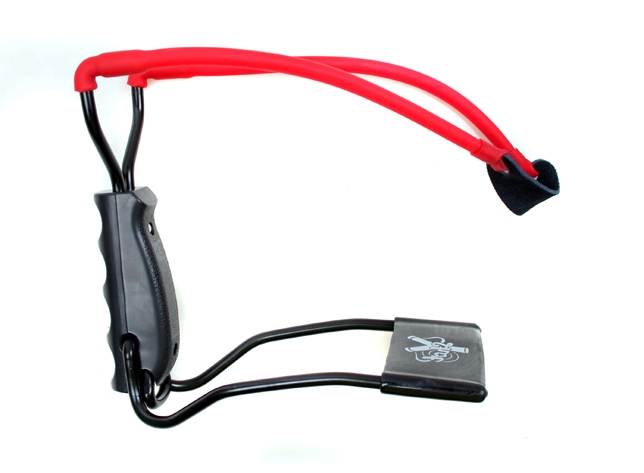 Рогатка улучшенной конструкции для спортивной стрельбы. Рукоять эргономичного дизайна изготовлена из пластика и имеет упор под запястье для лучшей фиксации рогатки при стрельбе. Упор, крепящийся к рукояти шарнирами, складывается, что существенно уменьшает размеры рогатки. К кольцу в нижней части рукояти можно привязать темляк или прикрепить цепочку. Концы вороненого стального рогачка загнуты на 90 градусов по направлению натяжения жгута, что уменьшает его износ. Конический в сечении и полый жгут изготовлен из высококачественной резины на основе натурального каучука, а седло для удержания снаряда - из прочной натуральной кожи. Благодаря форме жгута, скорость, на 30 % выше относительно 3040. Конструкция рогатки