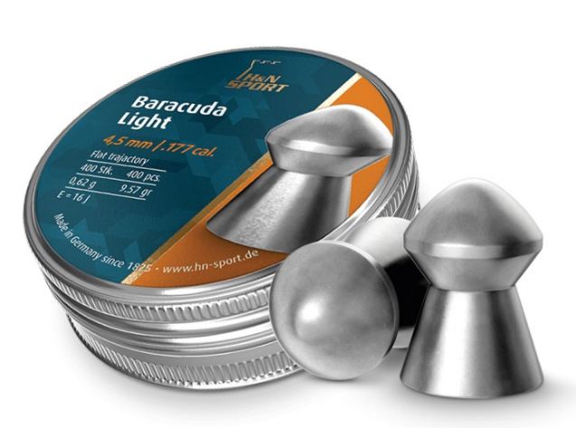 Пули для пневматики H&N Baracuda Light 4.5 мм, 0.62г (400 шт) высокоточная пуля для дальних дистанцийHN Baracuda Light калибр 4.5 - более легкая версия в сравнении с Baracuda Match, она показывает необыкновенную точность. Сниженный вес обеспечивает более высокую скорость и тем самым более плоскую траекторию полета. Наилучшие результаты показывают пневматические винтовки с дульной энергией 16 Дж. Низкое освинцевание и стабильная кучность благодаря специальному сплаву свинца. Для Екатеринбурга: