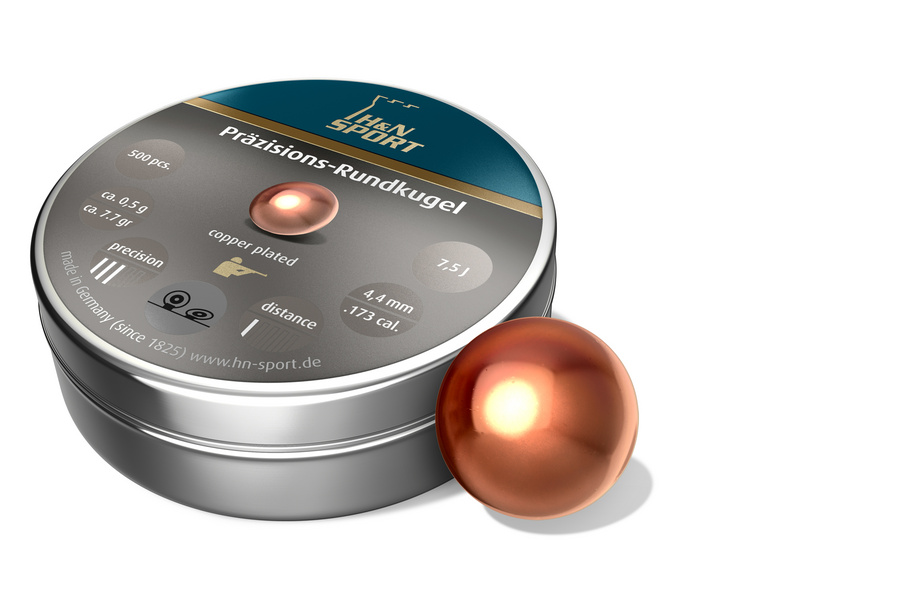 Главная → Купить по низкой цене → Пули и шары 4.5 / 6 мм → H&N → Пули пневм. H&N Rundkugel (Round kugeln) омедненные, 4.50 мм, 0.5 г (500 шт)