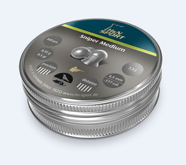 Пуля HN Sniper Medium 4.5 мм - бочкообразная высокоскоростная пуля Пуля Sniper Medium это бочкообразная высокоскоростная пуля для соревнований и для охоты. Она была разработана для Field Target и Hunter Field Target соревнований с пневматическими винтовками с дульной энергией 16 Дж и более. Особая форма пули снижает сопротивление воздуха и обеспечивает настильную траекторию полёта. Для Екатеринбурга: