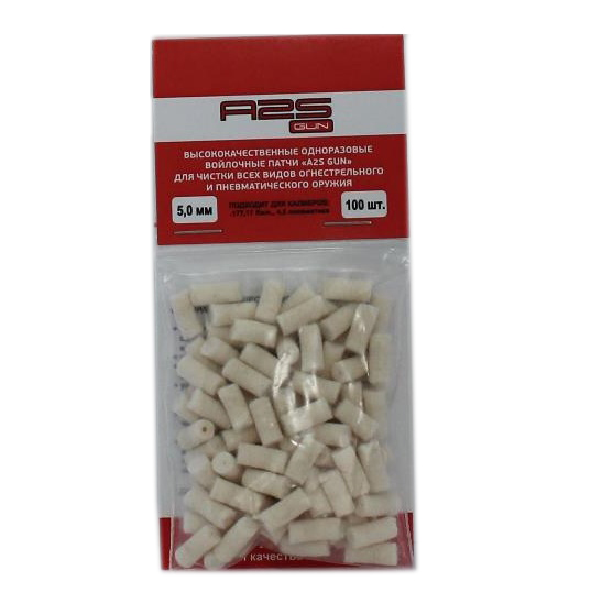 Патчи войлочные A2S GUN .177, 17 Rem., 4,5 пневматика диаметр 5 мм (100 шт). Высококачественные одноразовые войлочные патчи из белого войлока предназначены для чистки всех видов огнестрельного и пневматического оружия. Есть возможность чистить канал ствола выстрелом патча. Характеристики: