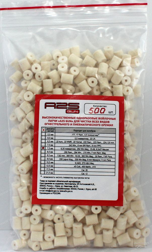 Главная → Купить по низкой цене → Пули и шары 4.5 / 6 мм → Патчи для чистки 4.5 мм → Войлочные патчи A2S GUN, 4.5 пневматика, .177, 17 Rem, уп. 500 шт.