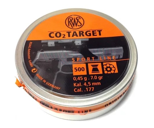 Пули пневм. RWS CO2 Target 4.5 мм, 0.45г (500шт). Пуля марки RWS CО 2 Target (ЦеО 2 Таргит) наиболее пригодна для использования при стрельбе из многозарядных пневматических пистолетов. Эта пуля отличается абсолютной функциональной надёжностью, в особенности для стрельбы из пневматического оружия CO 2 c барабанным магазином. Пуля марки RWS CО 2 Target (ЦеО 2 Таргит) - это надёжный, испытанный временем учебно-тренировочный боеприпас, характеризующийся хорошим соотношением цена-качество. Характеристики