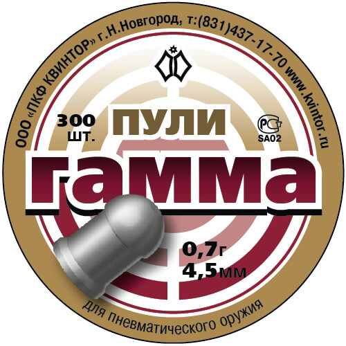 Главная → Купить по низкой цене → Пули и шары 4.5 / 6 мм → Квинтор (Россия) → Пули пневматические Квинтор "Гамма", 0.7г (300 шт)