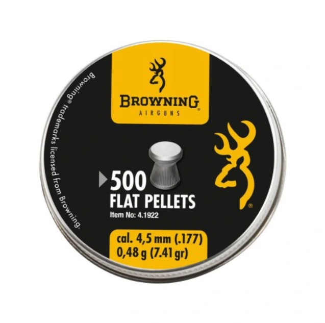 Пули пневм. Umarex Browning с плоской головкой и насечками на юбке, для прицельной и развлекательной стрельбы по банкам и бумажным мишеням. В упаковке 500 штук, вес 0,48 грамма. Благодаря плоской головке, оставляют чёткие отметки на мишени, что значительно облегчает подсчёт очков. Использовать их рекомендуется для развлекательной или спортивной стрельбы по мишеням и плинкинга. Для Екатеринбурга: