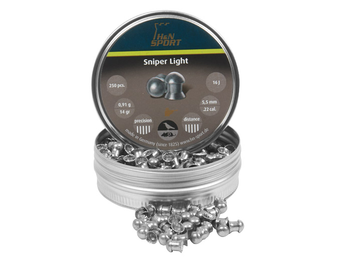 Пули пневм. H&N Sniper Light 5.5 мм, 0.91г (250шт). Sniper Light - это бочкообразная высокоскоростная пуля для соревнований и для охоты. Она была разработана для Field Target соревнований с пневматическими винтовками с дульной энергией не более 16 Дж (калибр 4,5мм) . Это семейство пневматических пуль включает также пули Sniper Medium и Magnum. Характеристики