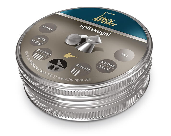 Главная → Купить по низкой цене → Пули 5.5 мм → H&N 5.5 → Пули пневм. H&N Spitzkugel 5.5 мм, 1.04г (200шт)