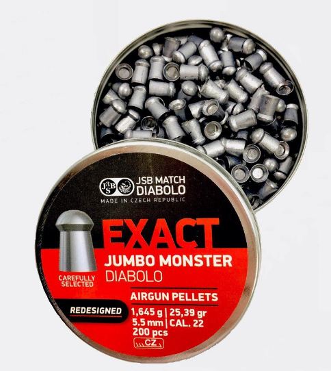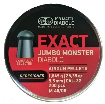 Главная → Купить по низкой цене → Пули 5.5 мм → JSB 5.5 → Пули JSB Exact Jumbo Monster Redesigned 1.645г, кал. 5.5 мм (5.52 мм) (200шт)